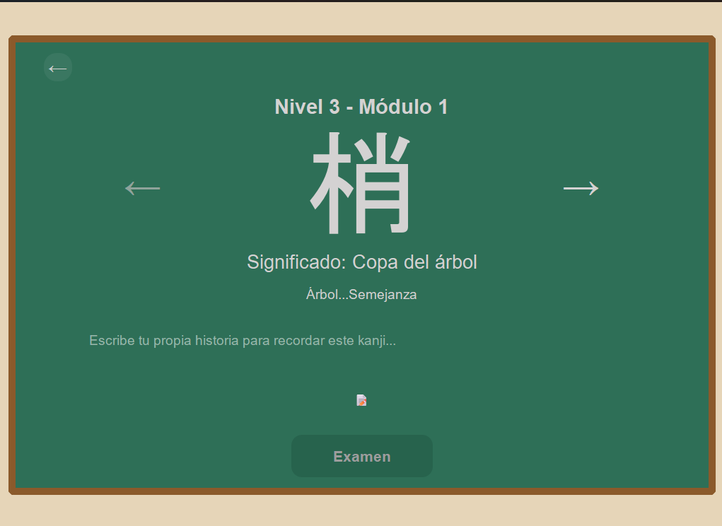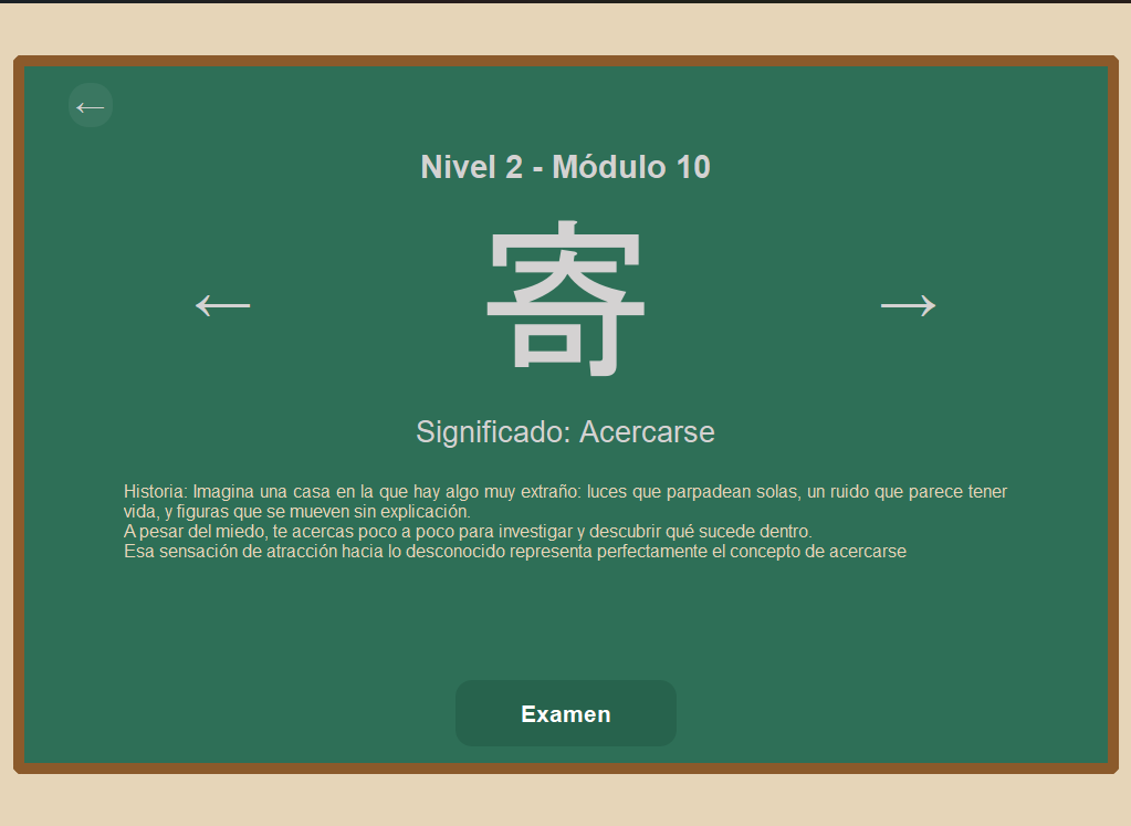 Cada kanji está asociado a una pequeña historia o imagen mental que facilita recordarlo.